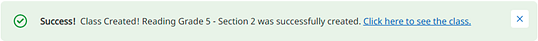 3. Click Save. A message appears confirming that the class has successfully been added and offering a link to the Class Overview page for the newly added class.