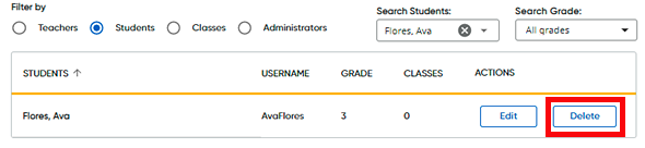 As an administrator, you can delete user accounts, including student, teacher, and administrator accounts.