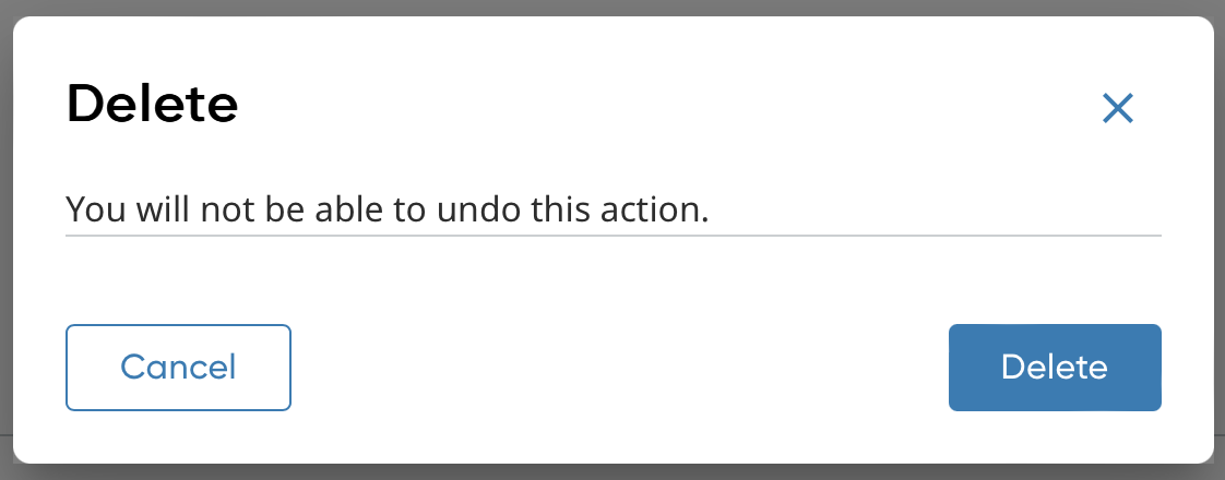 In the top right corner of the page, click the Delete button. A confirmation dialog box appears.