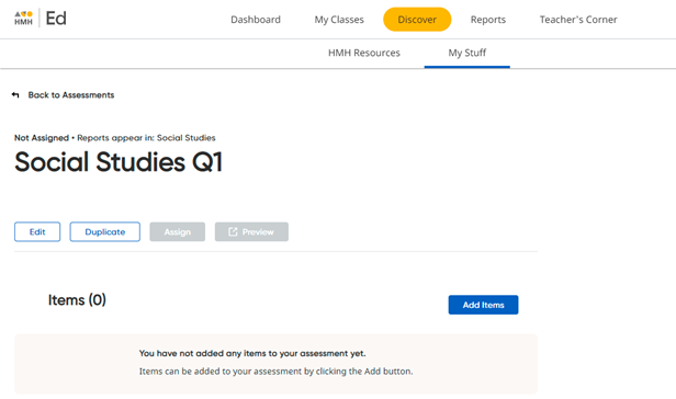 2 Click the Add Items button. The HMH Items page appears.