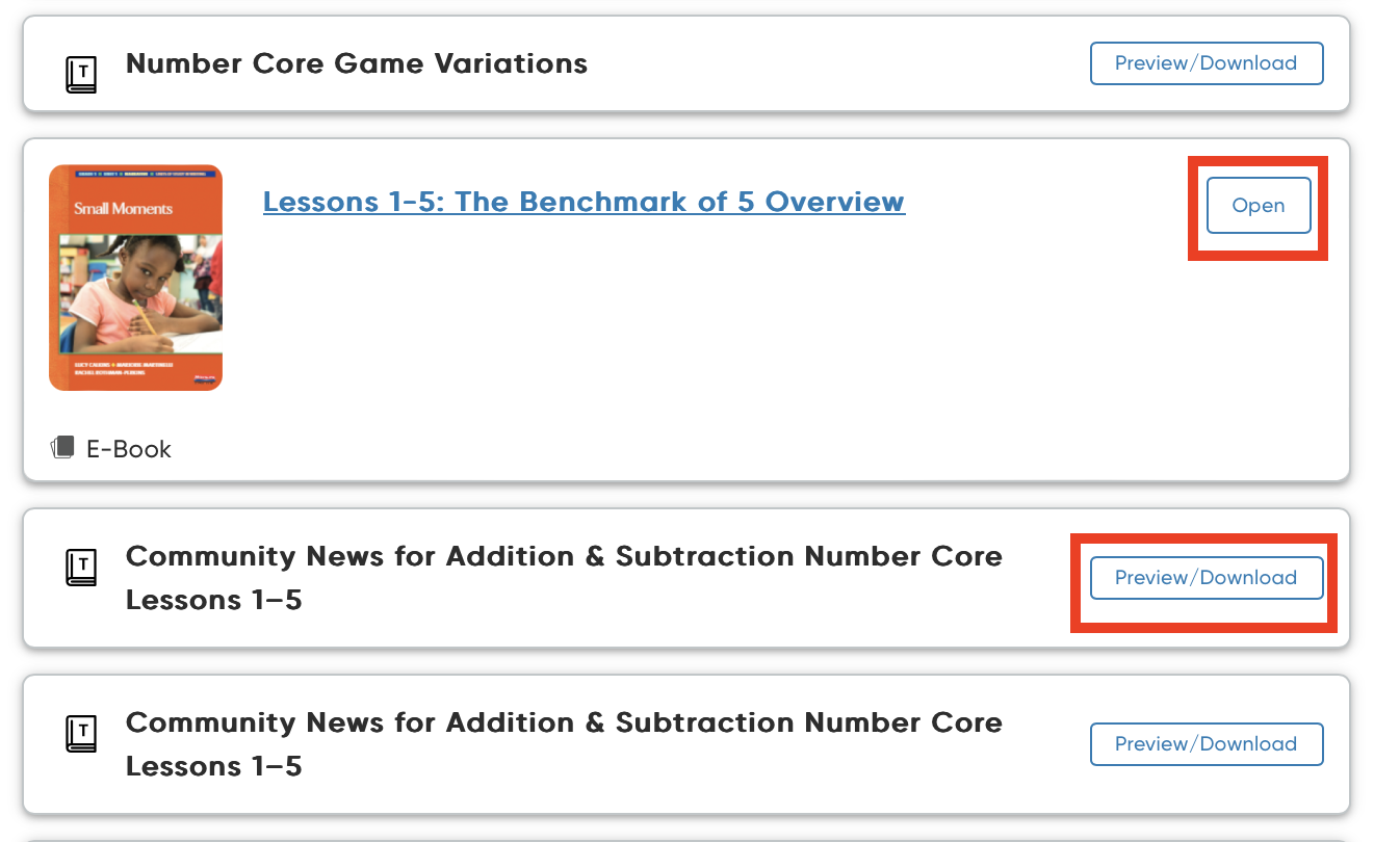 From the Product page, click Open or Preview/Download to open the corresponding resource for the lesson.