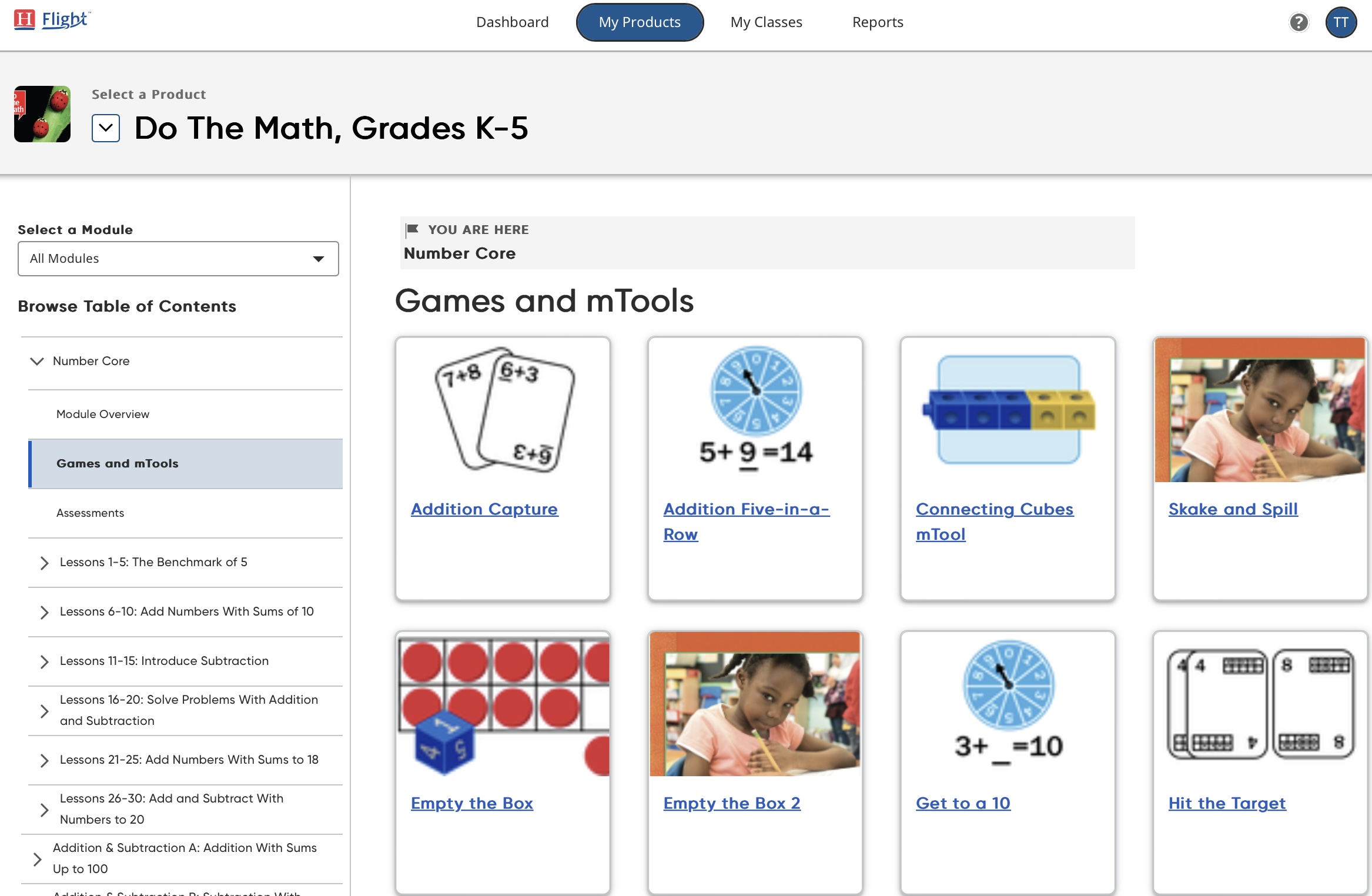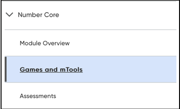 Click the Games and mTools link under the module name in the Table of Contents to view the games and mTools for that module.