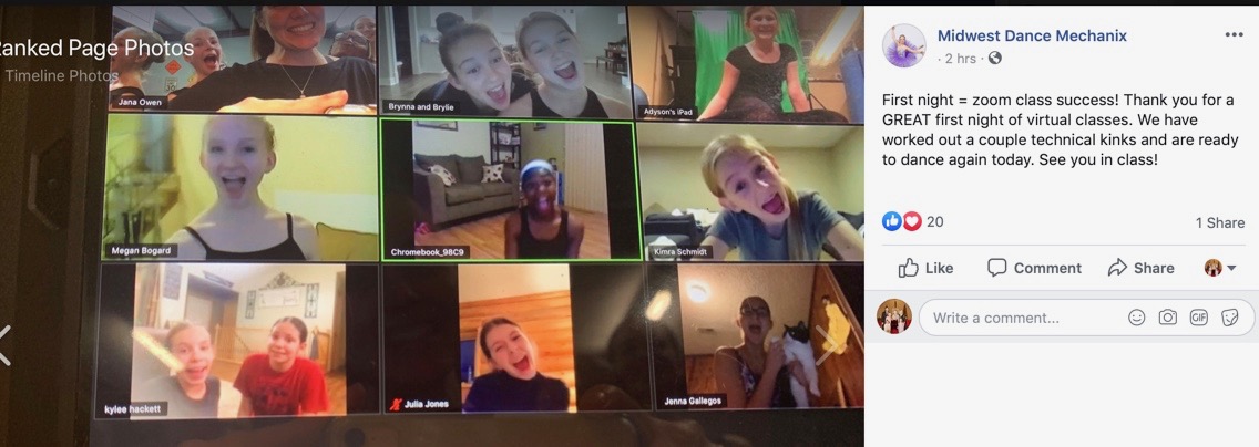 So things LOOK a little different in our Virtual Studio! While there are many obvious differences, after the first night of hosting LIVE Virtual classes, we also KNOW that many things still look the SAME... like the SMILES on the faces of the dancers who came to class and enjoyed doing what they love, interacting with their teachers and with one another! Those SMILES make all the effort worth it!