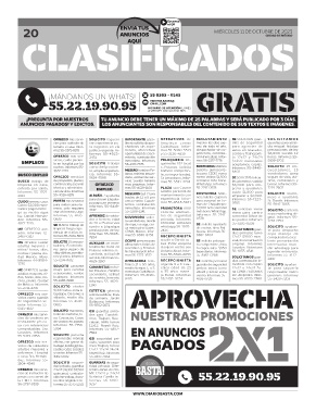 ¡PREGUNTA POR NUESTROS TU ANUNCIO DEBE TENER UN MÁXIMO DE 25 PALABRAS Y SERÁ PUBLICADO POR 3 DÍAS.