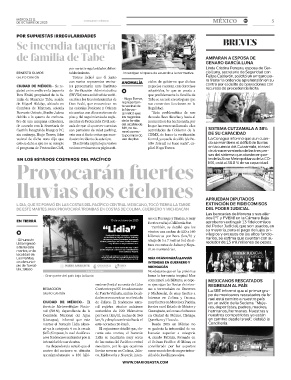 martes el huracán Lidia alcan- este-noreste a 26 km/h. Desde 2015 en México no Cancillería.