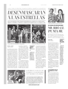 RAFAEL SUÁREZ producido por Ángel Fox. “Lo que más me gustó de in- do como El Puma Jr., quien al- • “Como fa-