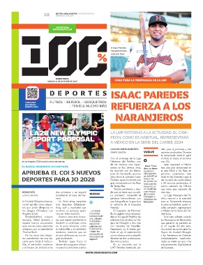 APRUEBA EL COI 5 NUEVOS ha ocurrido con los Naran- experien- la que lideró a los Rays en