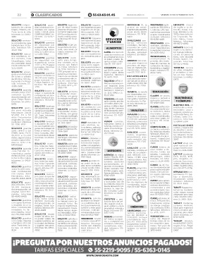 55-6416-3499. 56-3336-3015SOLI- mujer, cerca de me- nal 100% carne, ca- ministrativa. Infor- dades. Informes 55- de uñas, maquilla-