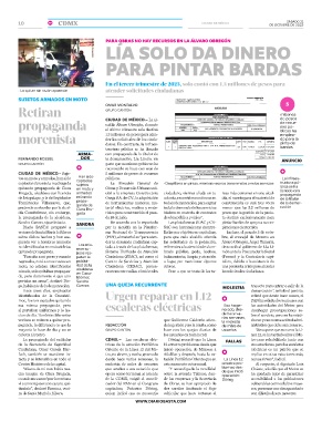 La propaganda del extitular CDMX.– Las escaleras eléc- Döring recordó que la Línea FALLAS tro para rehabilitarla junto con