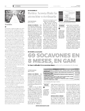 el transporte público y a la vez, hacer un lla- hundimientos en las calles de • Tiene la alcaldía, primer lugar en bacheo