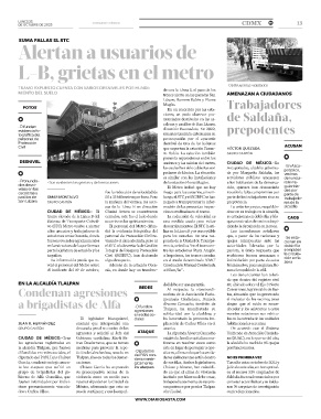 estaciones como Oceanía, donde personal de Protección Civil re- para los usuarios. En una res- que, a pesar de los reclamos y • Se esta-