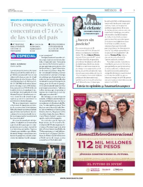 porte de carga con 3, 638 kilóme- ros el Estado puede usar esas vías Envía tu opinión @Anamariavazquez