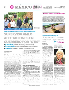 “Otis”, el cual tocó tierra la madrugada del ciones en Guerrero se registraron en la “Cos- López Obrador manifestó su