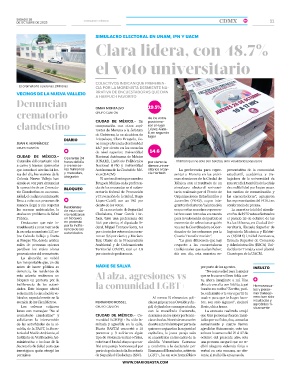 provenientes del crematorio. por ciento de preferencia. día con día, esta muestra re- Cuautepec de la UACM.