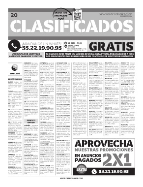 ¡PREGUNTA POR NUESTROS TU ANUNCIO DEBE TENER UN MÁXIMO DE 25 PALABRAS Y SERÁ PUBLICADO POR 3 DÍAS.