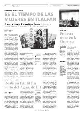 Alfa González en una elección "El gobierno garantiza dere- nocimiento blica, pues en Tlalpan se vive, niones divididas por la serie