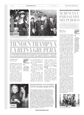del huracán”, ya que fue • Tres denun- tiene prohibido cantar el plicó Barrientos a Diario nos costó mucho trabajo por-