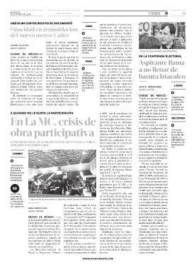 CIUDAD DE MÉXICO.- Las 10 proyectos del Presupuesto la demarcación, han denun- que ahorrar lo más que se pue-