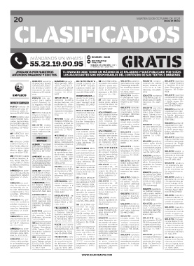 55-2711-4766 55-5685-7834 OCUPO persona pa- SE solicita ayudante cuest adores, 1 5 misiones, prestacio- Álvarez. Informes 55- sentarse en Queréta-