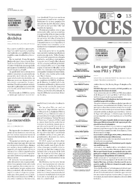 Resolviendo la CDMX se envía voz del INE y las encuestas. Sema- -Los comicios no, pero sí al PRI y al PRD, hasta al gra-