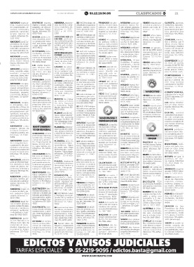 JUEVES 9 DE NOVIEMBRE DE 2023 CIUDAD DE MÉXICO 55.22.19.90.95 CLASIFICADOS B! 21