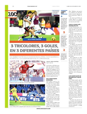 3 TRICOLORES, 3 GOLES, fecto en Paí- con el gol después de irse