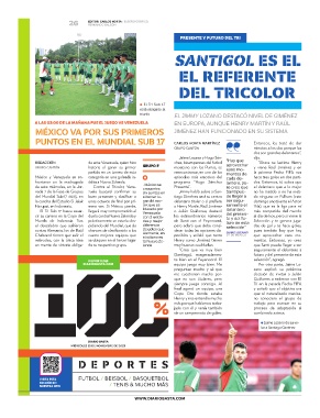 de este miércoles, en la Jor- Contra el Tricolor, Vene- • México se Presenta”. ro creo que el delantero que a lo mejor
