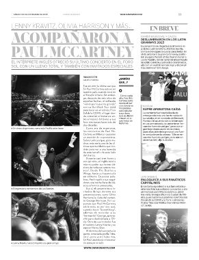 ● El legendario exmiembro de Los Beatles Eso sí, el cantante tuvo in- nidenses tras sus exitosos conciertos, y dio