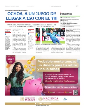 no leyenda, en el Estadio Azteca, en el jue- Ochoa: 148 Pardo.