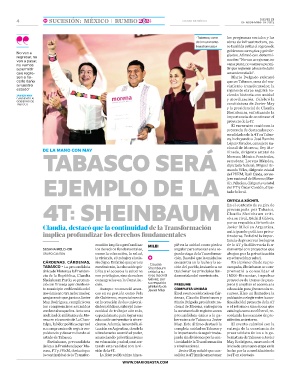 CÁRDENAS. CÁRDENAS, rio digno. Enfatizó que para su • Claudia encuentra en la lucha y la ac- En el primer día de su pre-