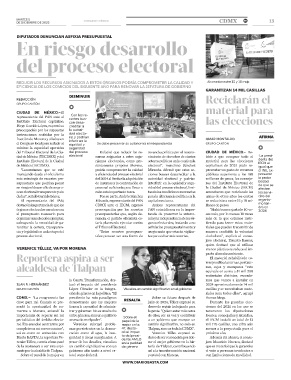 en riesgo el desarrollo de un pro- personal suficiente para llevar a ridad del proceso electoral, limi- la Ciudad de México (IECM) afecten
