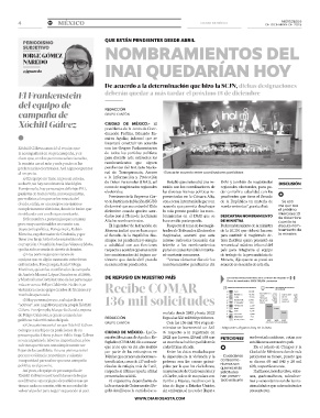 se vislumbra es un choque constante. dados por el Pleno de la Cámara bramientos en el INAI que se DESCARTAN NOMBRAMIENTO miércoles 13