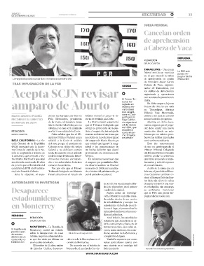 AUTORIDADES YA INVESTIGAN to por última vez el pasado sába- de captura y emitir una nue-