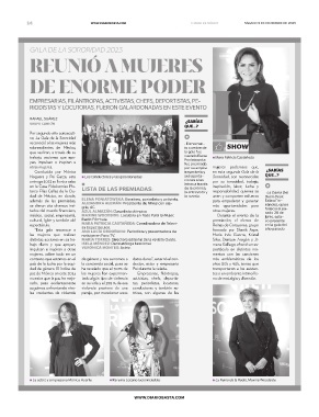 Noguera y Pei Garza, esta ● Los conductores y las galardonadas sus aporta- Sororidad, son reconocidas QUE...?