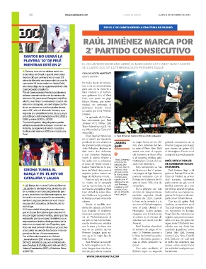 (90’+2’), mientras que por el Girona: Ar- Raúl Jiménez se sacudió que su olfato goleador re- el techo del delantero que