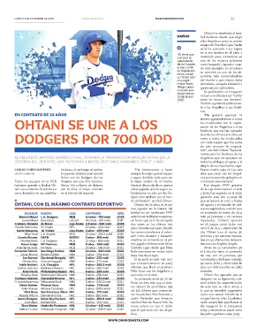 OHTANI, CON EL MÁXIMO CONTRATO DEPORTIVO Ohtani, de 29 años, es el pri- de agosto y el músculo de obli-