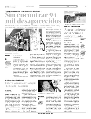 paradero se estima en estados riodista Marcela Turati, los co- en donde más se han denunciado bargo, la Semar se la ha negado;