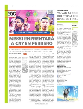 quien no podrá jugar, al en- der de la Saudi Pro League, deportivo de Inter Miami. ● Hoy se definen los 16 clubes con boleto