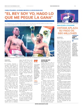 EL CAMPEÓN DE LAS 168 LIBRAS DETALLÓ QUE TENDRÁ UNA REUNIÓN EN DÍAS PRÓXI- ● Othani quiere que Dodgers arme un gran equipo
