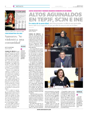 por lo publicado por Pages. millones de pesos. Guadalupe Taddei Zavala. que les provee de un aguinaldo mí- la desigual-