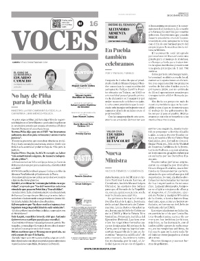 de Farsa y Corrupción por México, y termina balco- más indicada para suplirlo. ció su Poder y designó Ministra