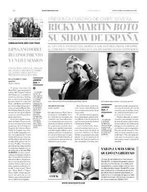 por que tienen la magia del con la en- ● Uno de los años menos estables para Ricky Martin ● El artista reporta tener una “gripe severa”