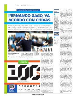 CARLOS HORTA MARTÍNEZ dor de Chivas. Firmará su do Gago tie- del equipo tapatío, que se to, luego que, al argentino,