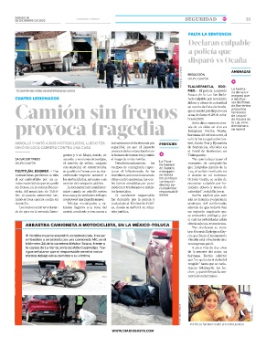 TULTITLÁN, EDOMEX. - Dos se quedó sin frenos y en su des- taron el fallecimiento de los mexiquen- Luz, el policía implicado en