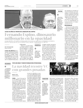 Fernando Espino, ocupa el cargo Transporte Colectivo (STC). nar grandes llones de pesos para el cumpli- De igual manera, se le ha visto