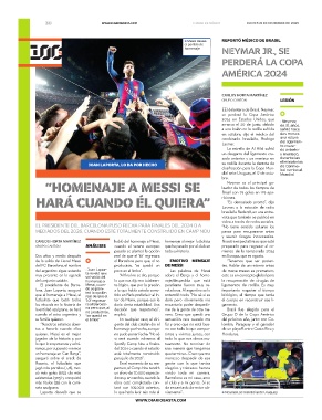 Laporta desveló que se lo que haría lucir aún más el viamente”. ● Neymar, se lesionó ante Uruguay