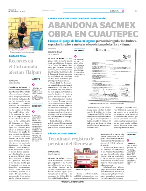 del Programa de Entre- disminución za de la laguna, el Sacmex aplazó mil pesos, sin lograr terminar tos, así como arrojar residuos,