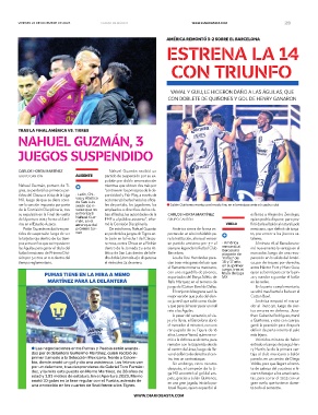 dez, y la mira esta puesta en Memo Martínez, de 28 años de ga MX encontró el gol del em- cieron festejar a los americanis-