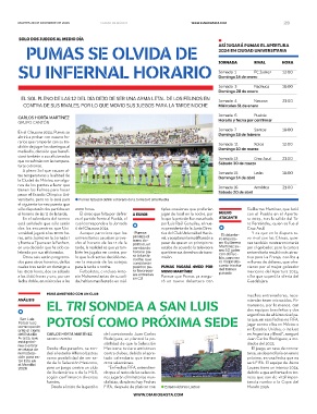 versitario, pero no lo será para ● Pumas falta por definir el horario de la Jornada 6 ante Puebla