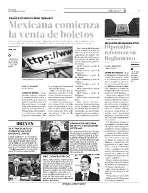 venta de boletos al público en martes 26 de diciembre. pesos Cámara de Diputados, establece